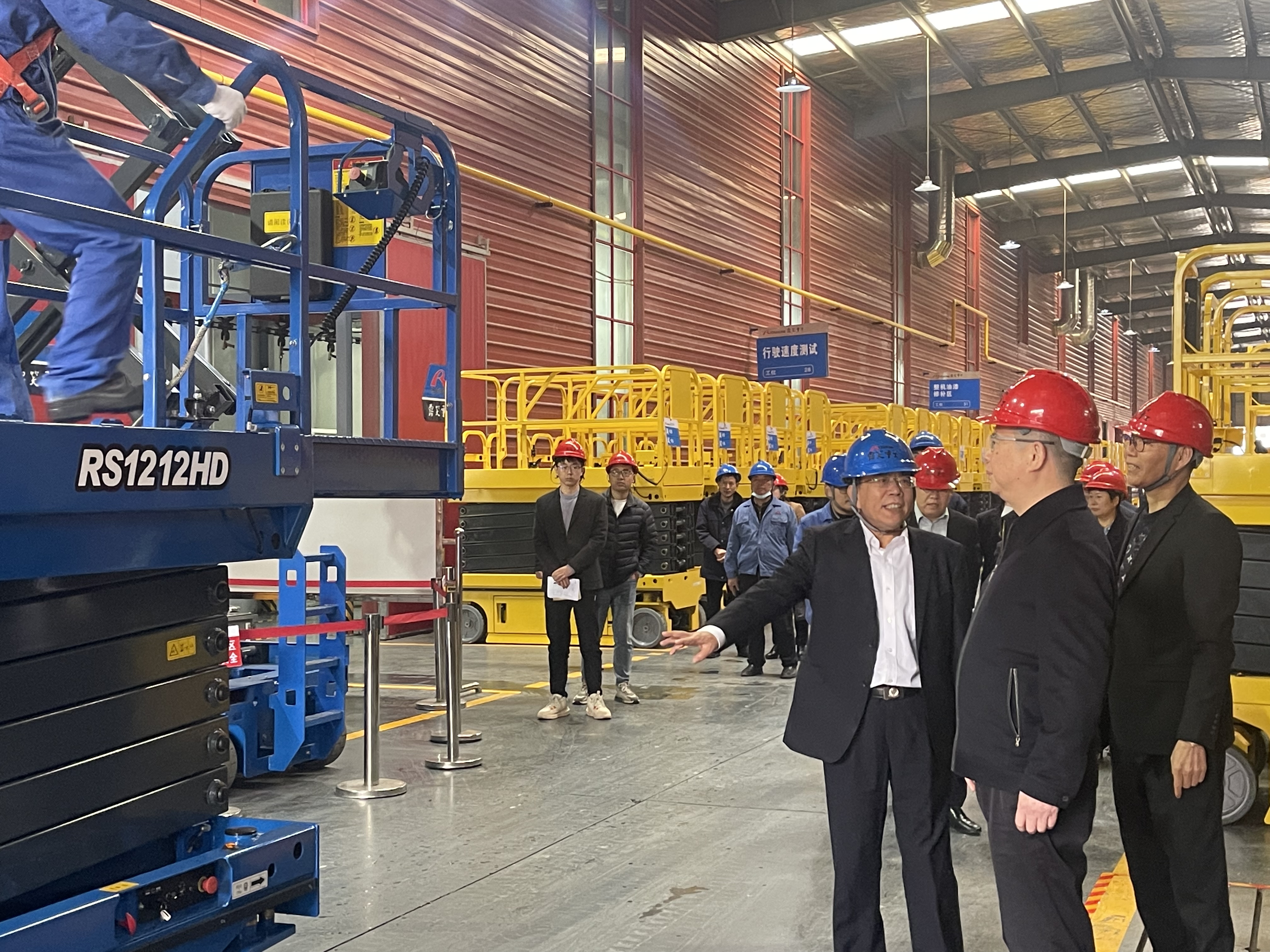 走访中鲁主席和王总详细介绍了登高车生产线的工艺水平、自动化程度、产能效率,以及产品质量的稳定性等,并一同观看登高车演绎。